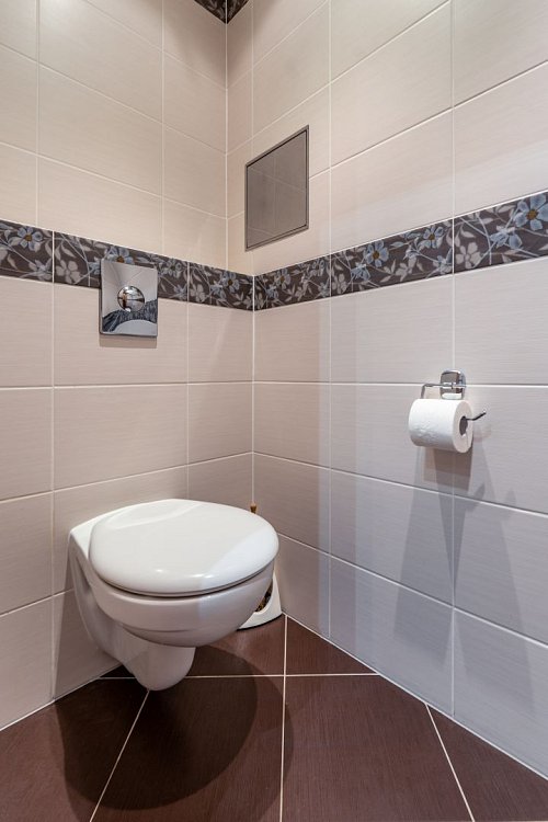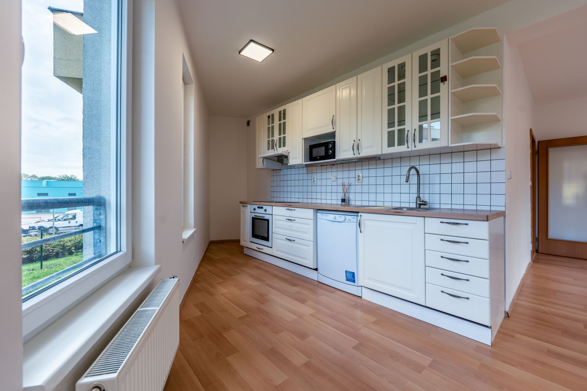 Součástí vybavení je kuchyňská linka s vestavěnými spotřebiči, plovoucí podlaha, dlažba, plastová okna, bezpečnostní dveře a zabezpečovací zařízení.