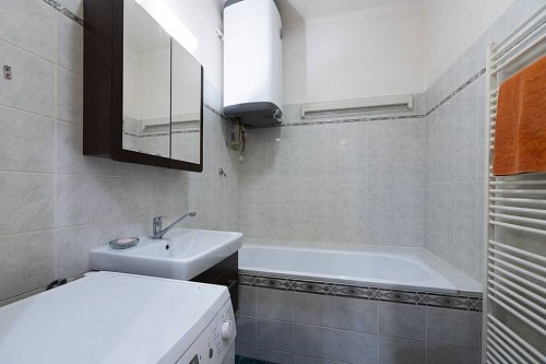 Součástí bytu jsou 2 sklepy, v rekonstruovaných sklepních prostorech, v domě se nachází místnost pro kočárky a jízdní kola.