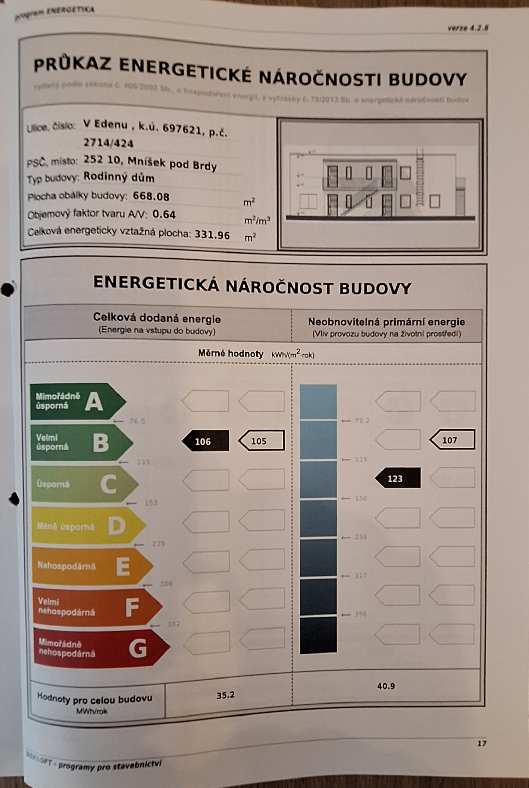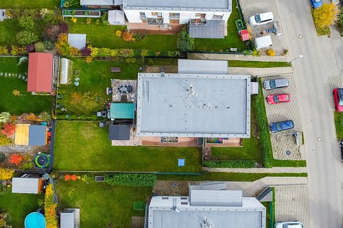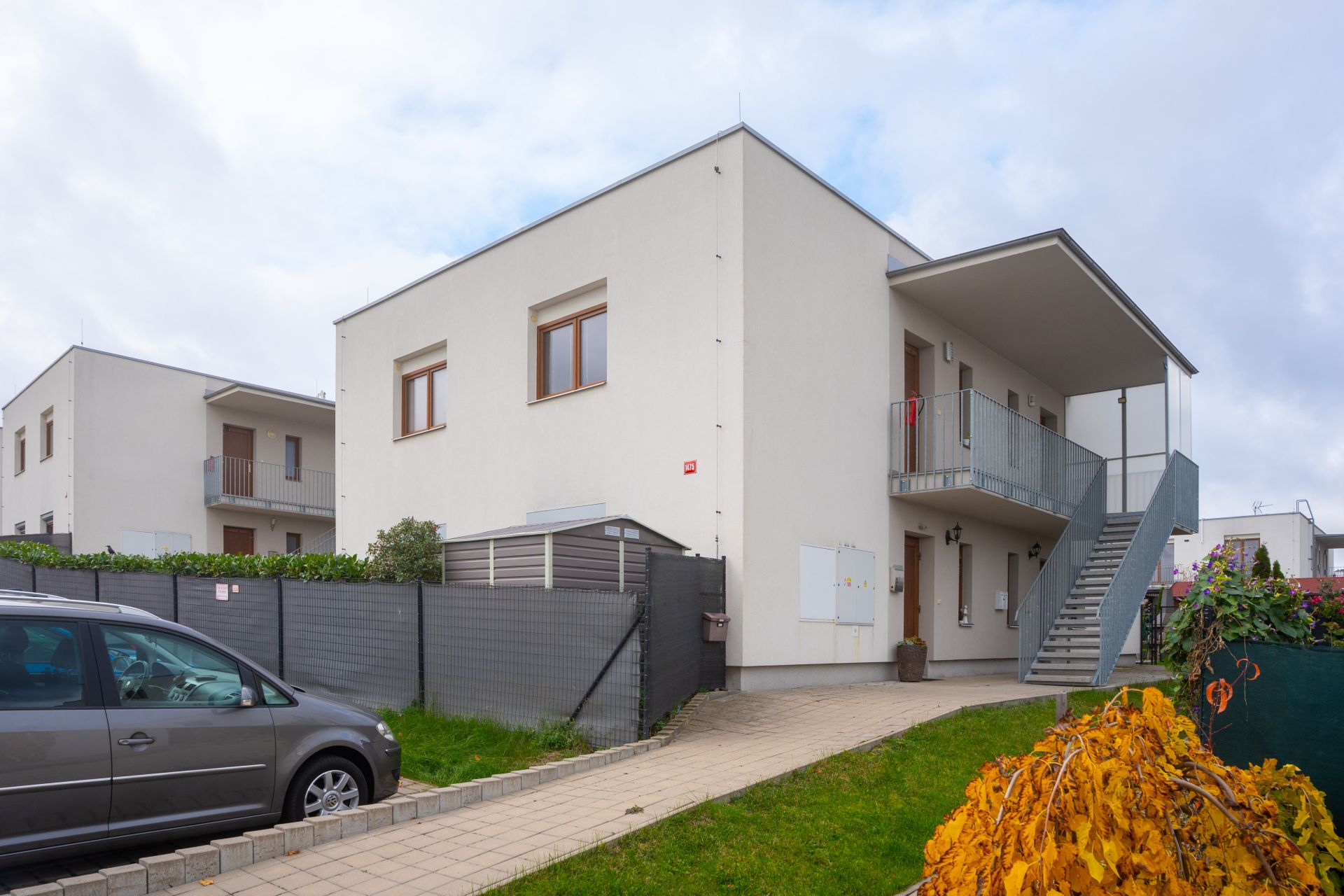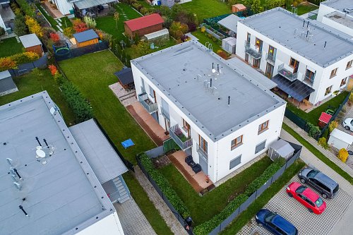 Nabízí komfort rodinného domu v rámci malého bytového projektu se čtyřmi jednotkami.